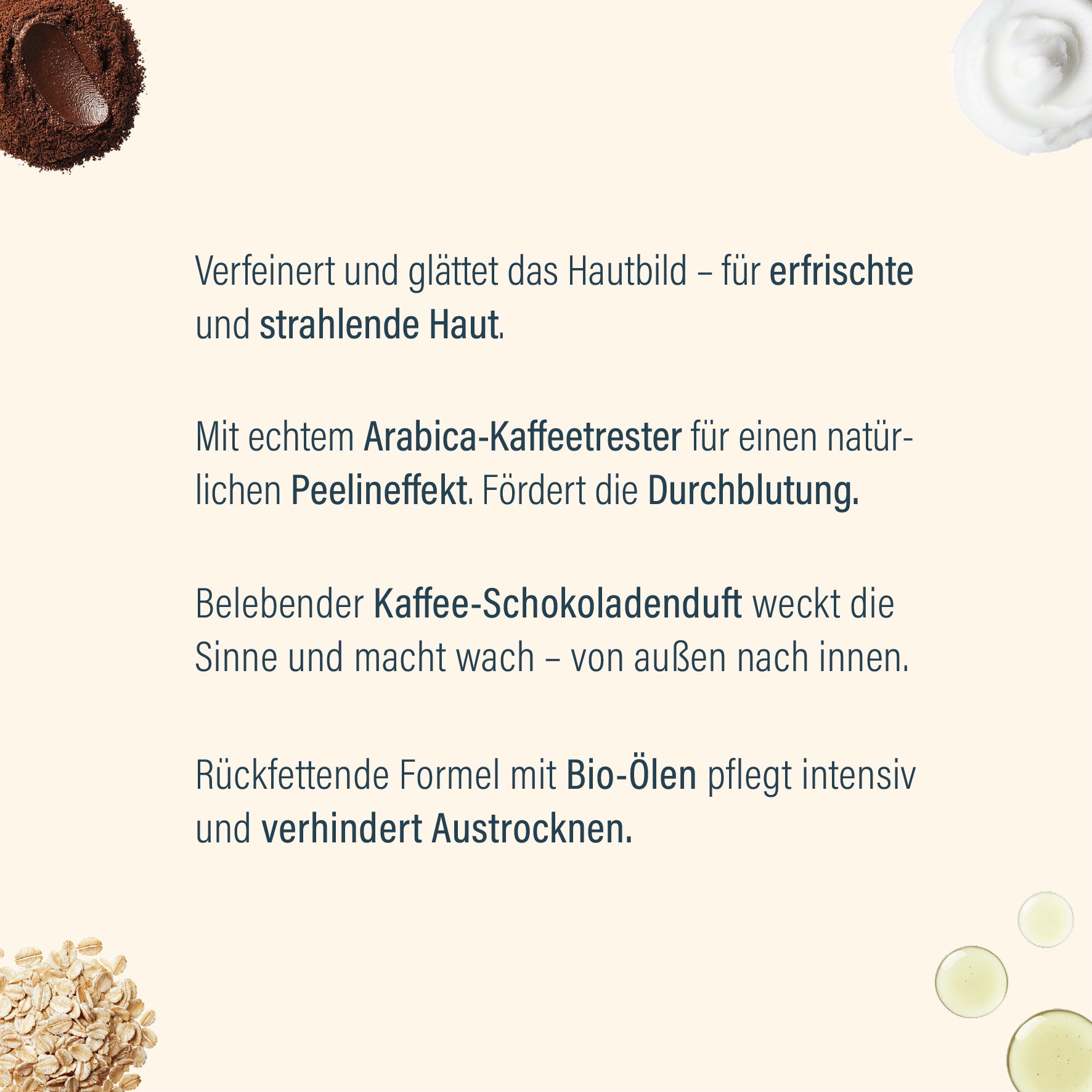 - Natürliches Peeling – echter Kaffeetrester entfernt abgestorbene Hautzellen